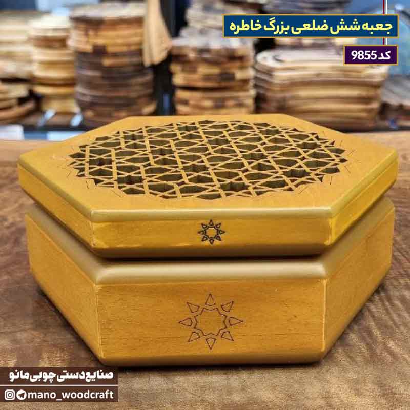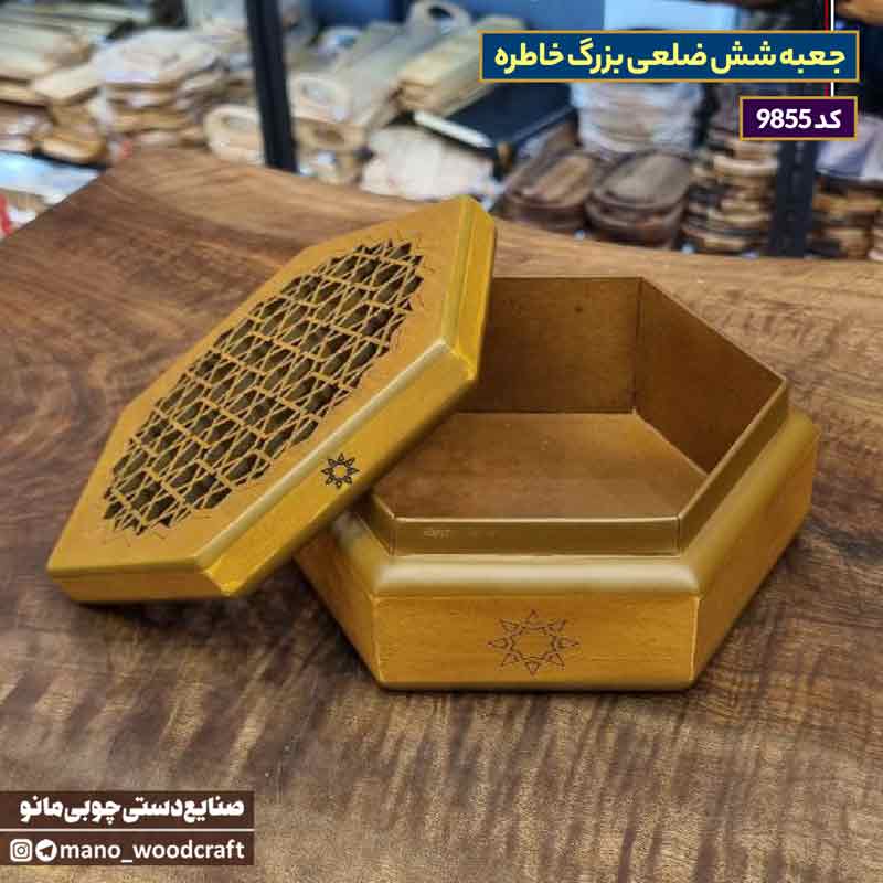 🪵 جعبه شش ضلعی بزرگ خاطره – نگهدارندهای خاص برای وسایل ارزشمند شما