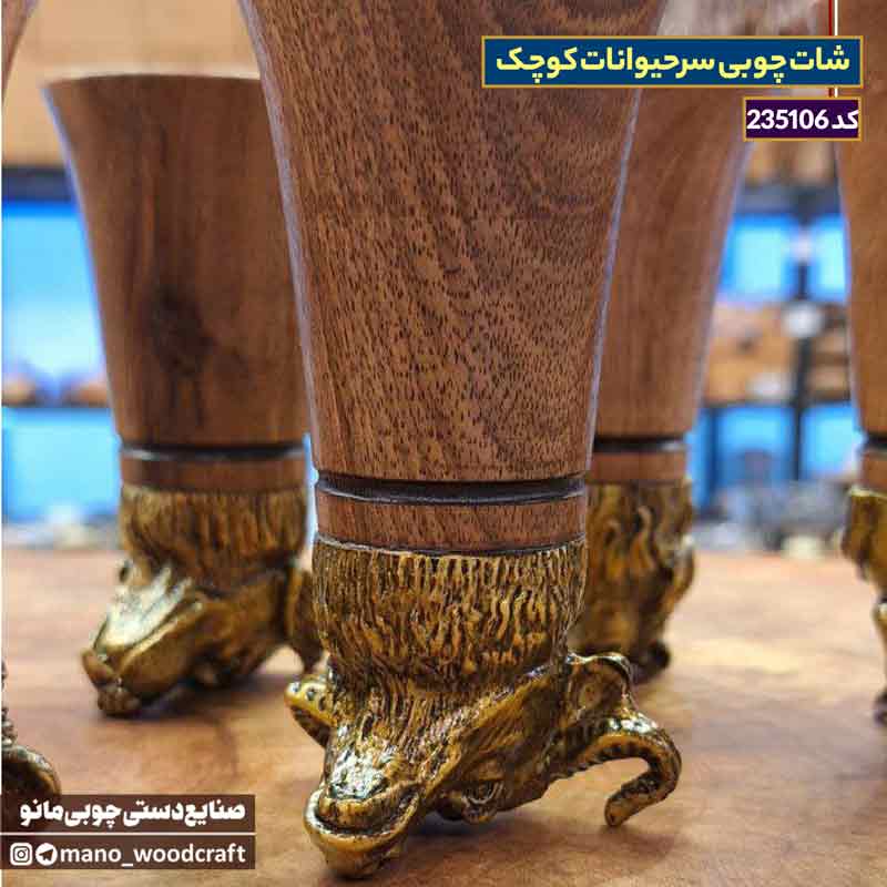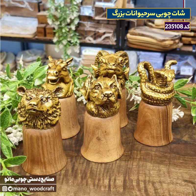چوب گردو با بافت طبیعی و گرم خود، در کنار رزین شفاف، ظاهری جذاب و مدرن ایجاد کرده است. طراحی سر حیوانات روی این شاتها، باعث میشود هرکدام شبیه یک اثر هنری کوچک باشند.شات چوبی سرحیوانات